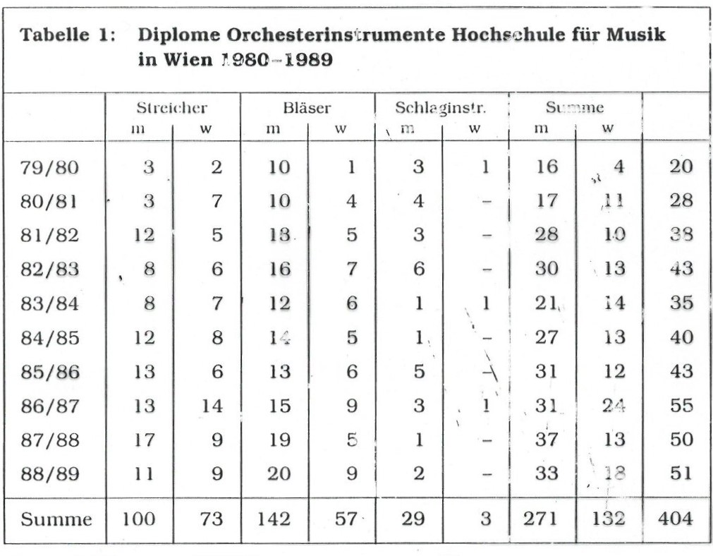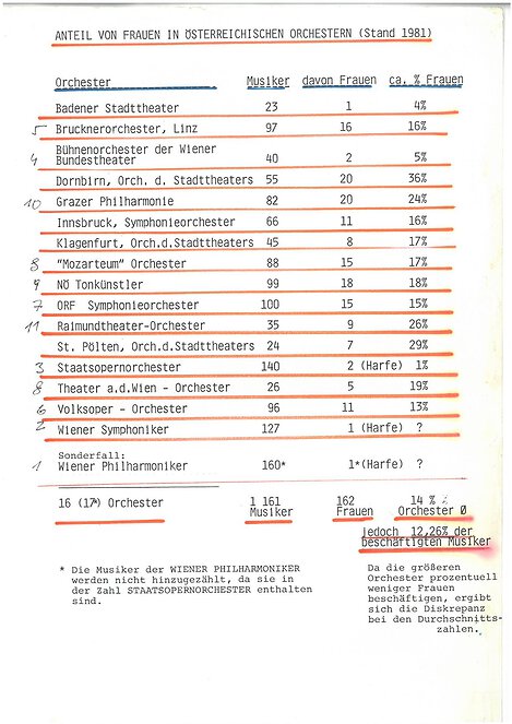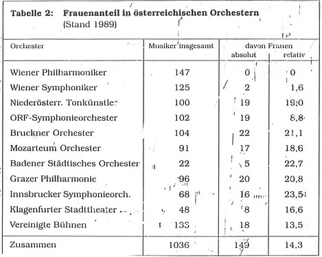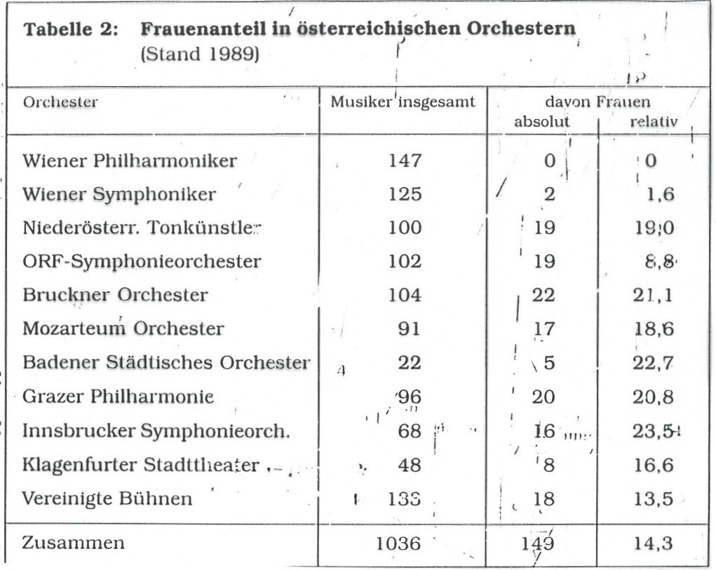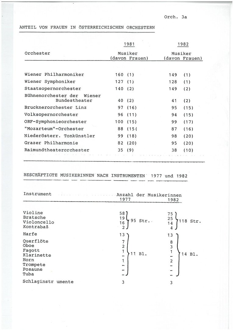 - Anteil von Frauen in österreichischen Orchestern (1981, 1982 und 1989)
