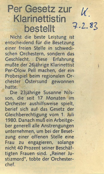 John, Rudolf. Die blonde Nette mit der Klarinette. Exklusivinterview mit Sabine Meyer. Kurier, 5.5.1983, S. o.A. [Nachlass Elena Ostleitner]